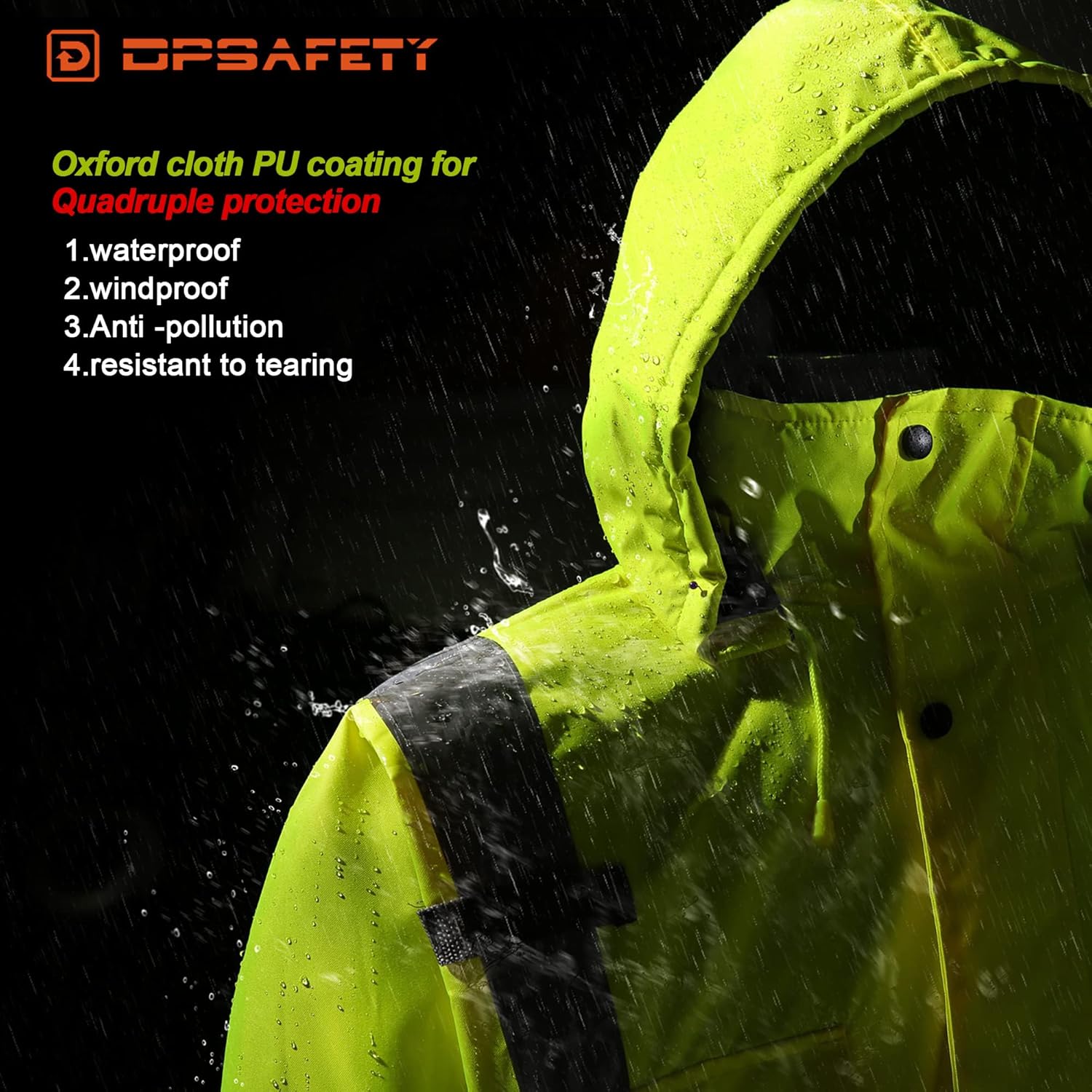 Keeps you dry in rain, snow, or wind. The bright fluorescent color with reflective strips ensures 360° visibility. Ideal for safety in various environments. 🌟
